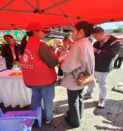 2026年2月19日至21日,云南省屏边苗族自治县举办国家级非物质文化遗产——苗族花山节。资源环境学院25水文与工程地质1班学生邓丽丹主动加入“文明屏边”学雷锋志愿服务队,全程参与节庆保障工作,以青春之力护航活动安全、有序、文明开展,助力民族文化传承与民族团结进步。