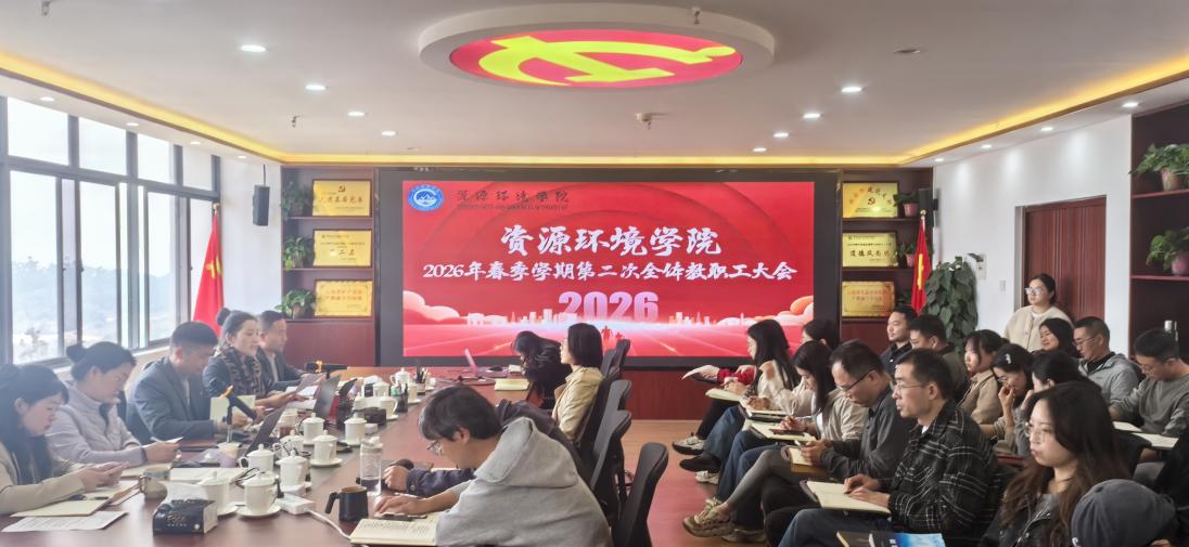3月25日,资源环境学院在载物楼905会议室召开2026年春季学期第二次全体教职工大会暨办学能力评价动员部署会。学院领导班子成员及全体教职工参会,会议由学院党委书记关利钦主持。